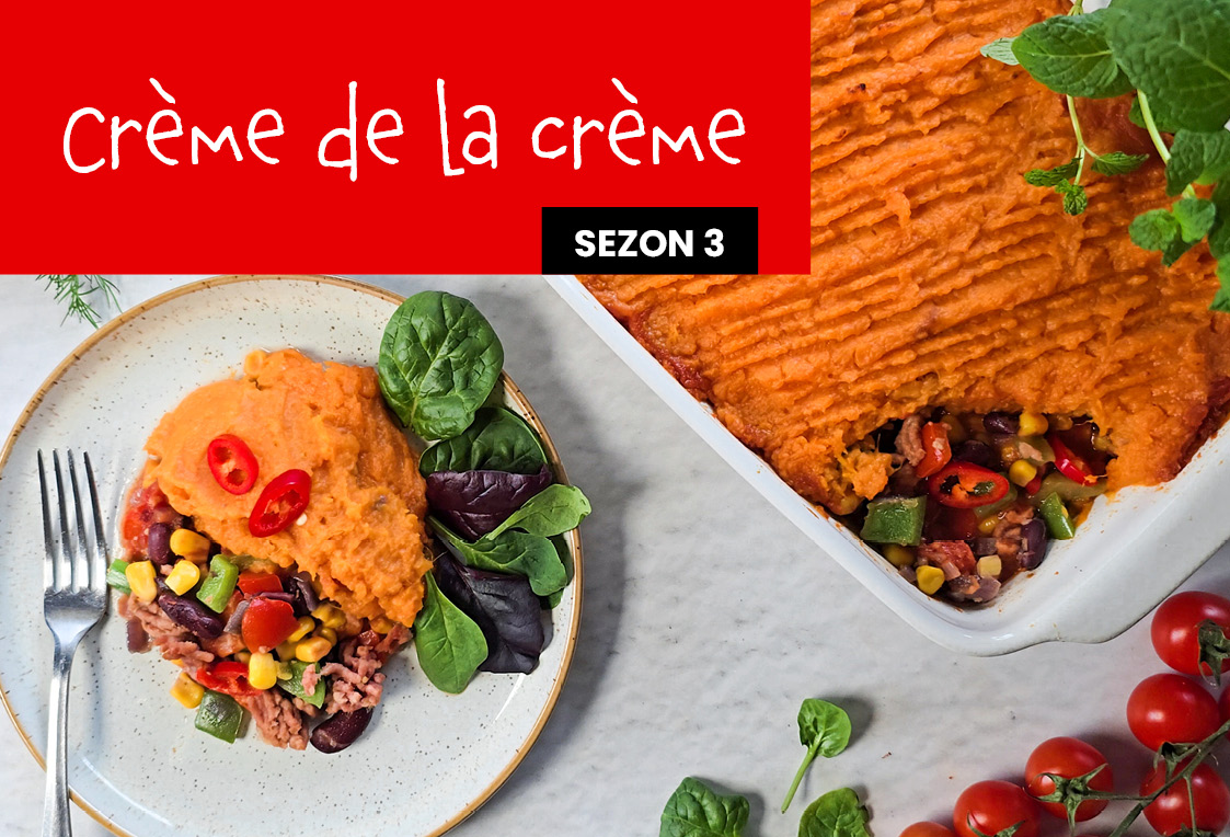 Bataty obierz, pokrój w kostkę i ugotuj w osolonej wodzie do miękkości (około 15–20 minut). Odcedź, dodaj sól, masło i rozgnieć na gładkie purée. Dopraw solą i odstaw pod przykryciem, aby nie wystygło. Cebulę drobno posiekaj. Papryki pokrój w kostkę. Na dużej patelni rozgrzej olej, dodaj cebulę i smaż 2–3 minuty, aż się zeszkli. Następnie dodaj mieloną wołowinę i smaż, aż się zarumieni i przestanie być surowa. Dodaj pokrojone papryki, smaż 3–4 minuty, aby lekko zmiękły, ale pozostały jędrne. Dodaj odsączoną czerwona fasolke i kukurydzę. Dodaj chili. Wymieszaj. Wlej krojone pomidory z puszki. Gotuj na małym ogniu około 10–15 minut, aż sos lekko zgęstnieje. Dopraw solą i pieprzem do smaku. Gotową potrawkę przełóż do naczynia żaroodpornego. Na wierzchu równomiernie rozprowadź purée z batatów, tworząc warstwę przykrywającą mięso. Wstaw do piekarnika nagrzanego do 180°C i zapiekaj przez około 30 minut, aż wierzch lekko się zarumieni. Podawaj na gorąco.